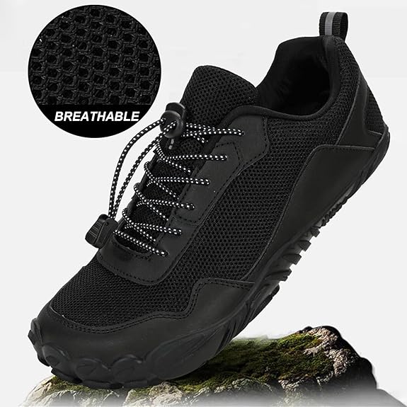 Men's Mesh Drawstring Trail Running Shoes Slip On Wide Toe Box Minimalist Training Shoes Casual Anti-Slip Lightweight Walking Hiking Shoes